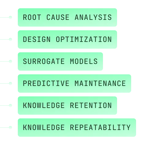 Instead of rebuilding analysis pipelines for every investigation, turn engineering investigations to reusable workflows. Failure analysis, design exploration, or modeling pipelines can be applied to new datasets, new products and new programs across the organisation.